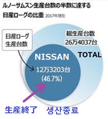 ルノーサムスンでもルノーは新車種を投入しないと言っているし、日産ローグの生産も終了して、順調に生産台数が減っている。