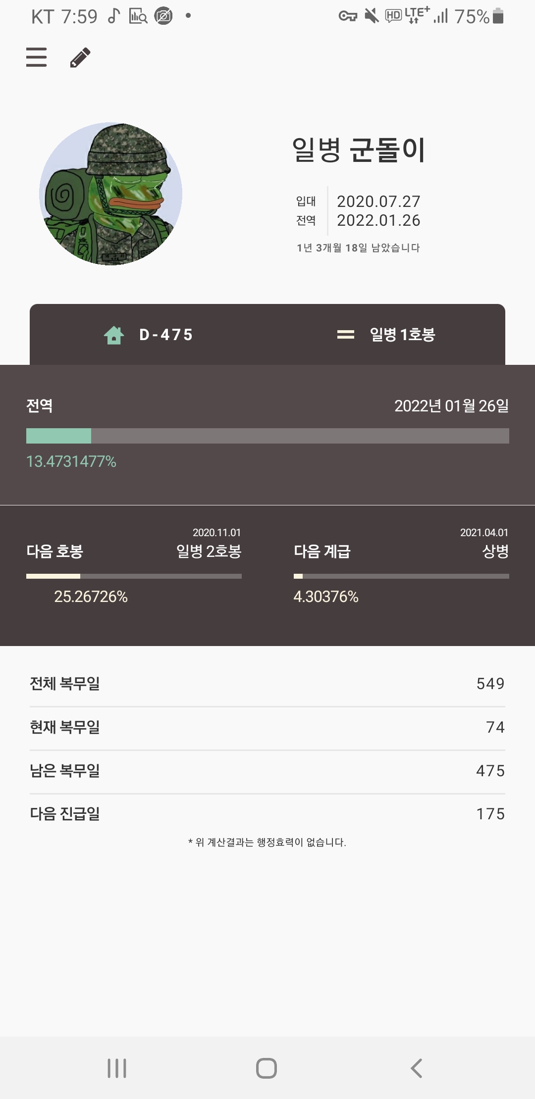 この画像は、兵役者のステータスが確認できる、スマートフォンのアプリでしょうか?