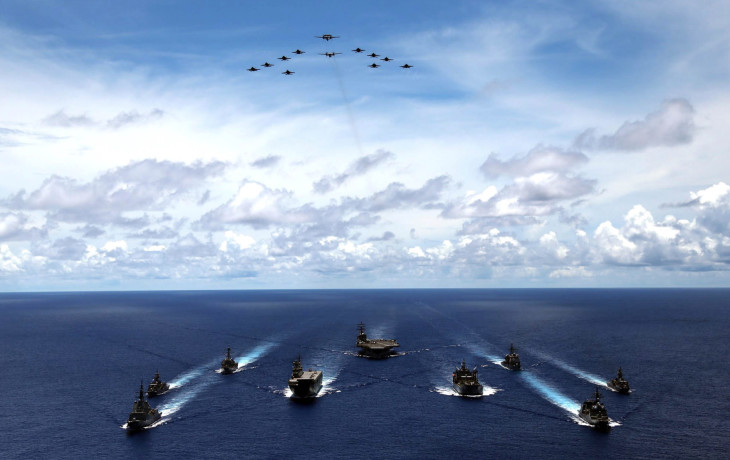 海上自衛隊は7月19日から23日まで、南シナ海および西太平洋で、米空母打撃群とオーストラリア国防軍との3国共同訓練を実施している(海上自衛隊)