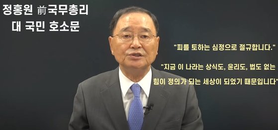 鄭ホン原(チョン・ホンウォン)元首相が「血を吐くような心情で絶叫する」として「国民が出てくださるべきだ」という内容の対国民要請文を27日、発表した。