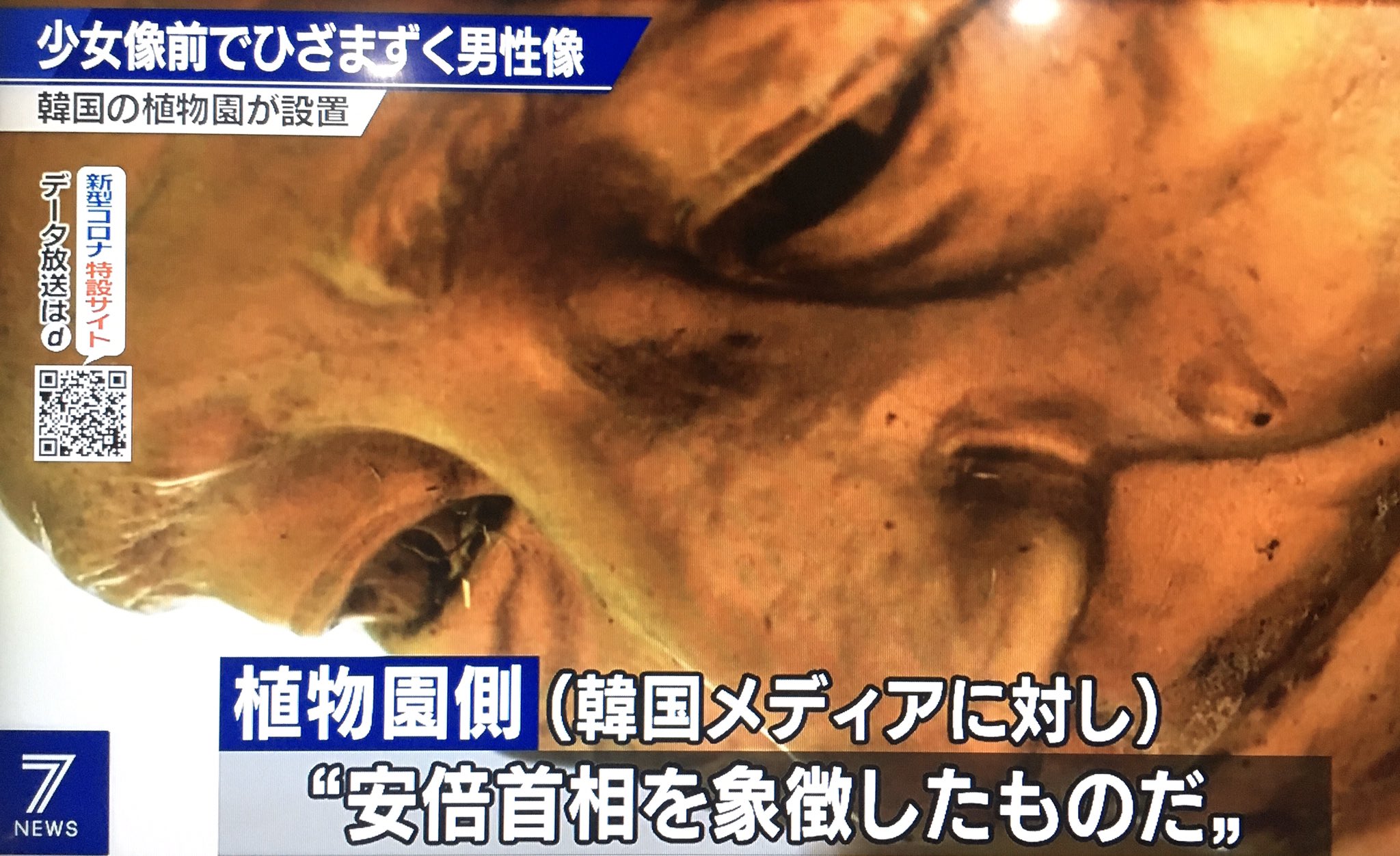 少女像の前に日本の安倍晋三首相がひざまずいて謝罪する姿の造形物を設置したキムチャンニョル韓国自生植物園長28日、「極めて個人的なこと、外交問題に飛び火することを望まない」と述べた。