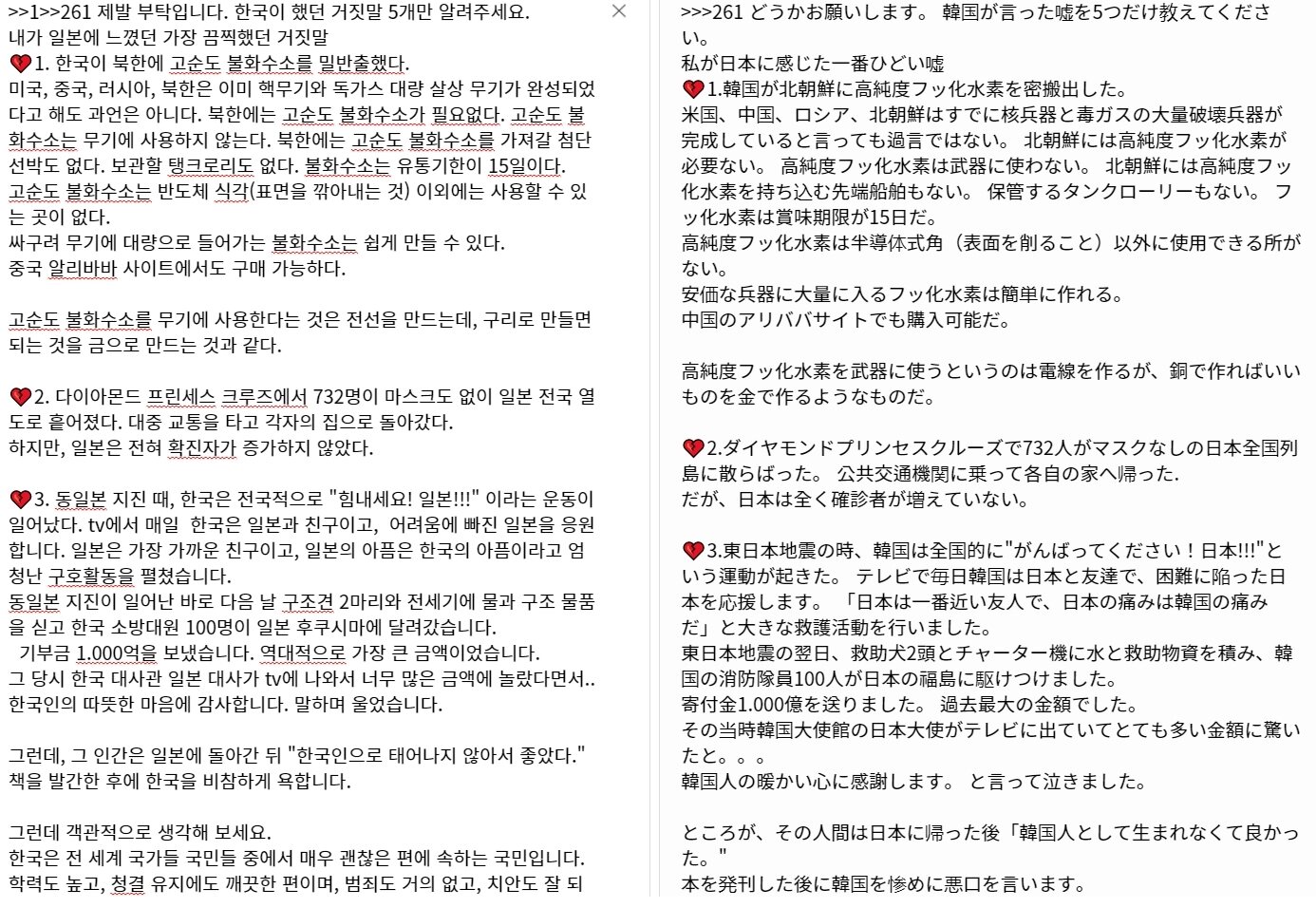 日韓議員連合を解散してくれる人を総理に選びたいです。韓国人のご都合主義フィルターが仮にかかっていても、何らかの物事を深堀りした信頼ある情報を出してくれればなんらかの糧にはなるのだけど、大元の情報の真偽が怪しい上にそうだったらいいな脚色をいっぱいつけて持ってくるし、しかもどれだけ時間割いて加工したかは知らないけど、その努力分無駄にコピペを連発するから全く参考にならず、単なるスパムに化しているんだよね。