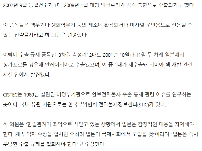 企業名を開示すれば終わった話だが、韓国政府から返答が無かった為に、SAMSUNGをはじめ多くの韓国企業が不正輸出していたと判断された。>>953 일본 안 가.