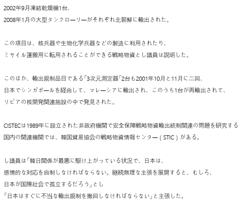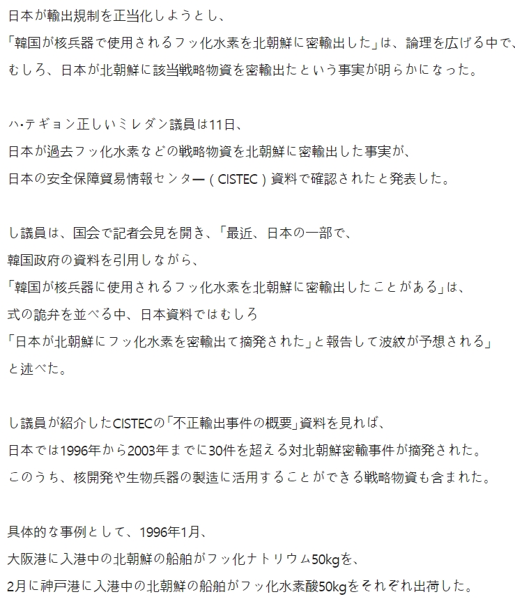 「フッ化水素を不法搬出証拠を日本政府は提示していなかった。」?不法搬出した事は既に明白だ。
