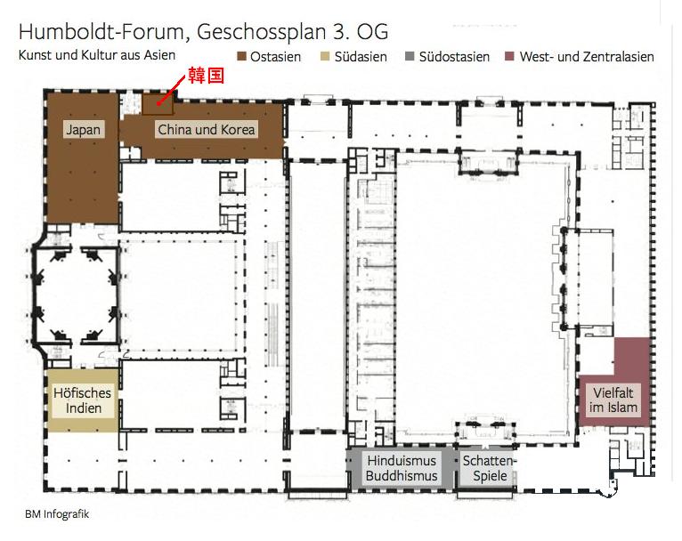 2020年7月28日、韓国・国民日報は、ドイツ・ベルリンにオープン予定の展示施設で、韓国のスペースが日本と中国の10分の1程度と計画されており、その背景には「朝鮮は16~19世紀には清の属国、1905年からは日本の植民地であり、古代文化が貧弱だ」という「歪曲(わいきょく)された認識」があると伝えた。