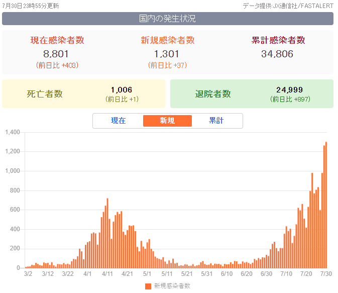 テドロス氏は、7月に感染者数は増加したが、「死者数は最低限に抑えられている」と指摘。「最終的に重要なのは感染者の数でなく、命を救うことだ」と強調した。ふ~ん、よかったですね。