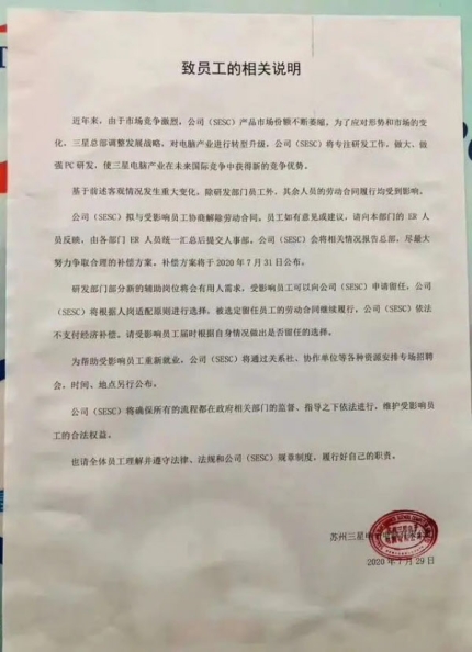サムスン電子が中国江水省蘇州市にあるノートパソコン生産工場を閉鎖し、1000人近くの人員削減に踏み切ったと、中国紙ポンパイ新聞など現地メディアが2日報じた。