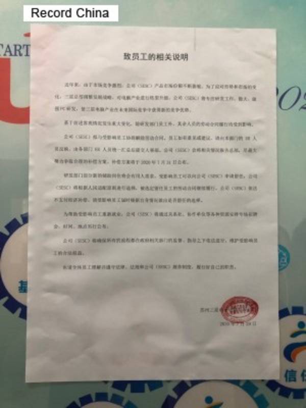 2020年8月1日、米ボイス・オブ・アメリカの中国語版サイトは、韓国のサムスン電子が中国国内における最後のPC工場であった蘇州工場での生産中止を発表したと伝えた。