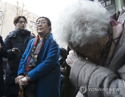 >裁判を傍聴していた慰安婦被害者の李容洙(イ・ヨンス)さんは無罪が宣告されると立ち上がり、