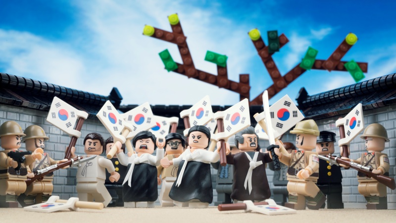 レゴブロックの写真を撮る写真家のイ・ジェヒョンは、歴史的な出来事をレゴブロックで示し、18枚の写真を撮ります。18枚の写真から、Korea.netは独立運動の歴史を説明するために以下を選択しました。