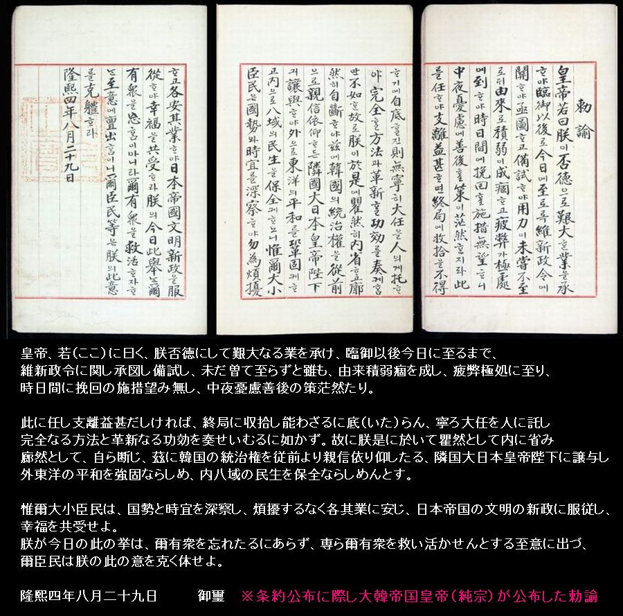 1910年8月29日純宗皇帝は、日本に一切の統治権を完全かつ永久に譲与しました。