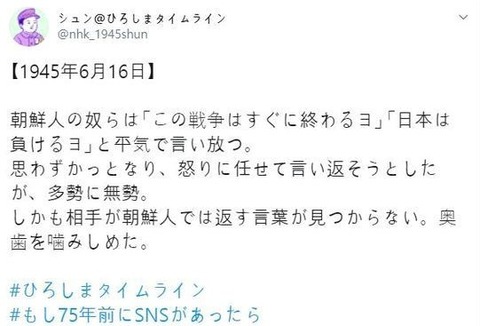 【韓国の反応】NHK「ひろしまタイムライン」で "朝鮮人" に関する投稿で物議