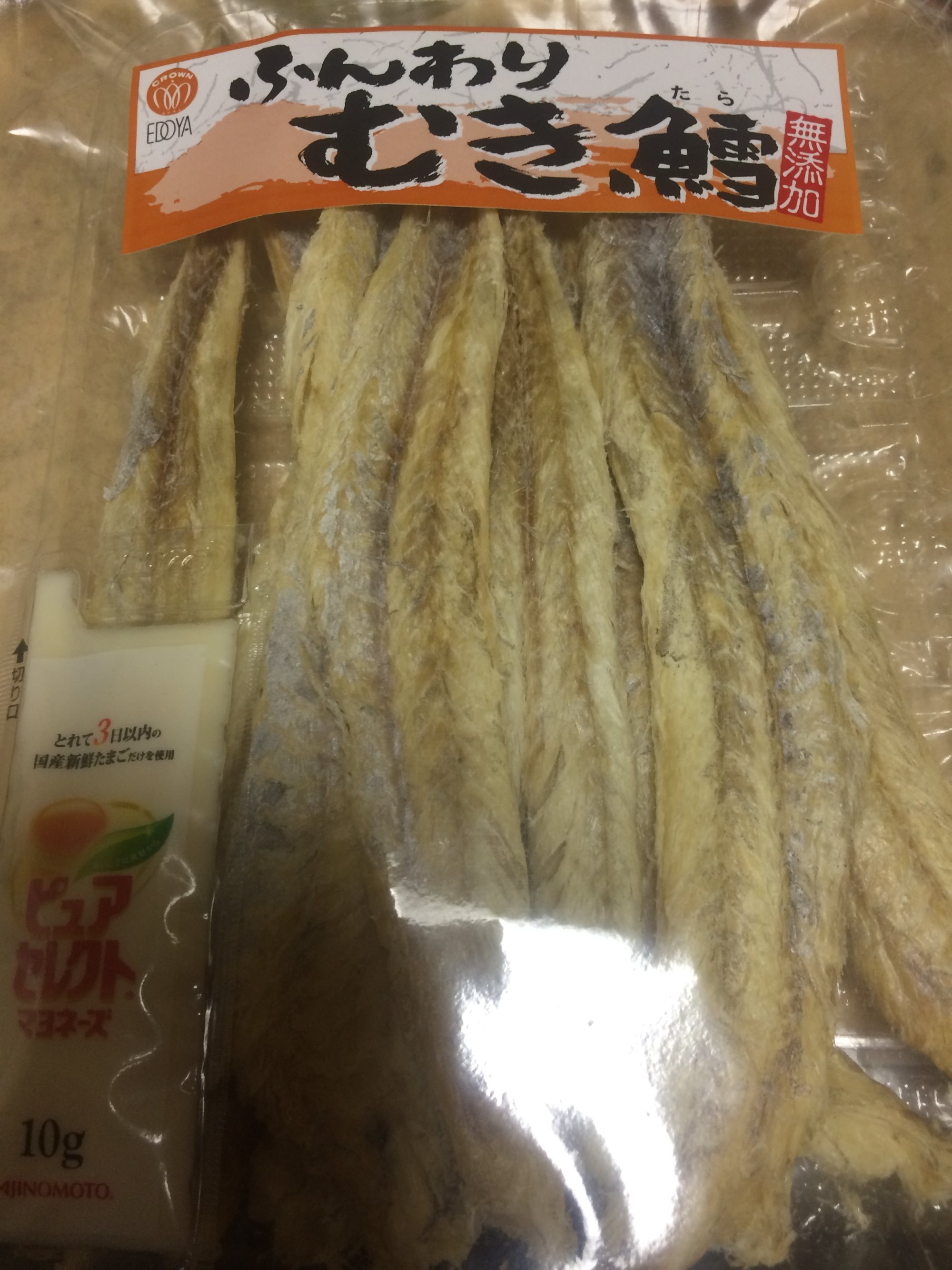 コマイにマヨネーズ七味唐辛子も食べます。치킨고로케