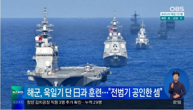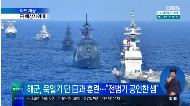 国民情緒法に違反した南朝鮮海軍を解体せよ。[단독] 해군, 욱일기 단 日과 훈련…"전범기 공인한 셈"