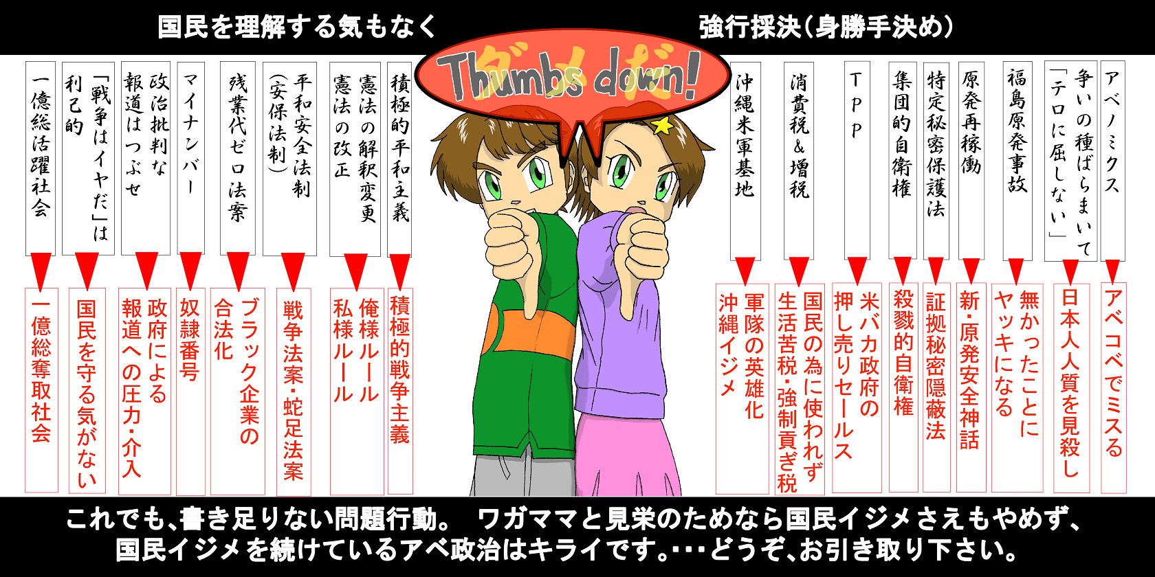 또 자민당?>>32 安倍批判自体はしたって構わないんだよ。自浄作用として働くんなら。そうじゃなくて、言ってることが筋が通ってないから、ただのお荷物でしかない。