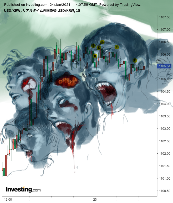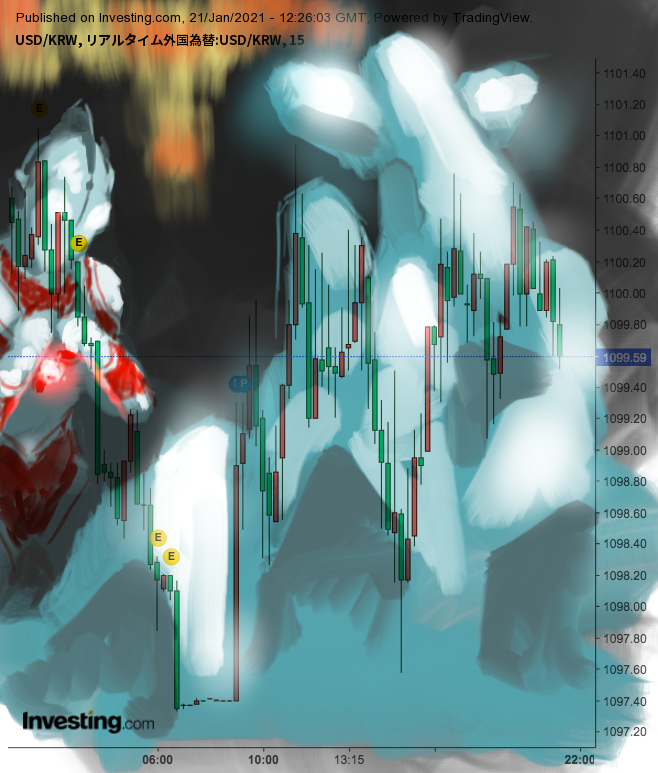 ウォンは1100の攻防、コスピは3000の攻防が続くね、このバランスが崩れた時が危ないね。