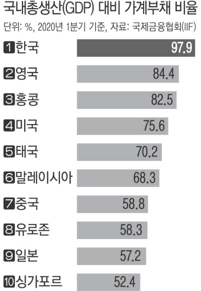 韓国の家計債務比率が対GDP比97.9%で世界1位、日本は?