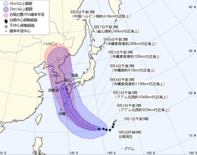 18名無し2020/09/03(Thu) 10:58:49ID:Q0NzE1MDg(2/3)NG報告さーてどうなるか韓国気象庁によると、台風10号は7日午前8時ごろ慶尚南道統営(キョンサンナムド・トンヨン)側に上陸するとみられる。続いて慶南咸安(ハムアン)→慶尚北道高霊(キョンサンブクド・コリョン)→江原道原州(カンウォンド・ウォンジュ)・春川(チュンチョン)などを経て北朝鮮地域に午後3時ごろ移動すると予想されている。 https://japanese.joins.com/JArticle/269842>>211