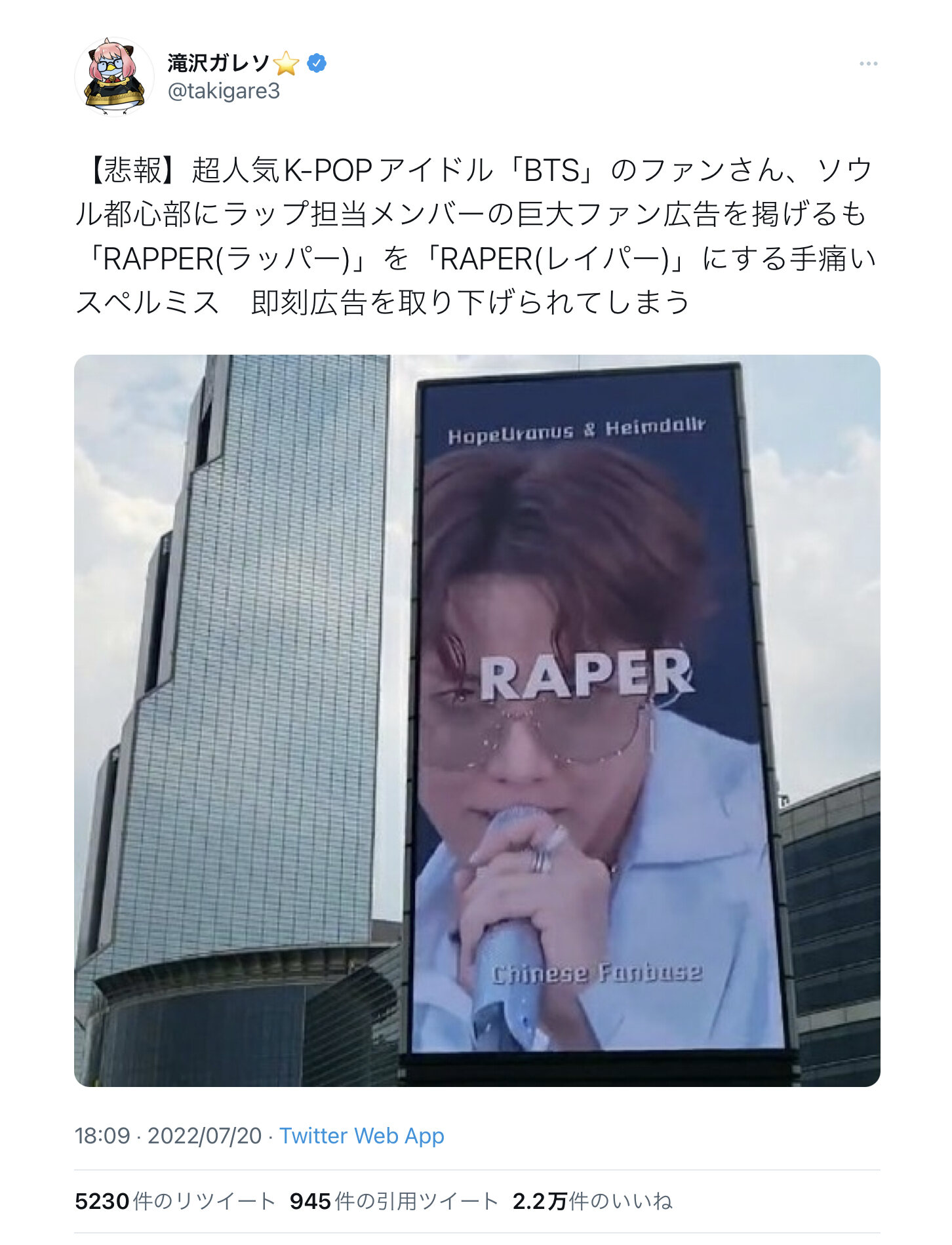 次に名前が出た時は大体、性犯罪者。"結束バンド"が日本で一番注目されてるとか、朝鮮人には分からねーだろうな。