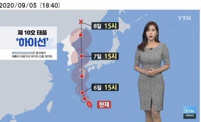韓国の気象庁が台風10号「ハイシェン」の韓国上陸を認めた。