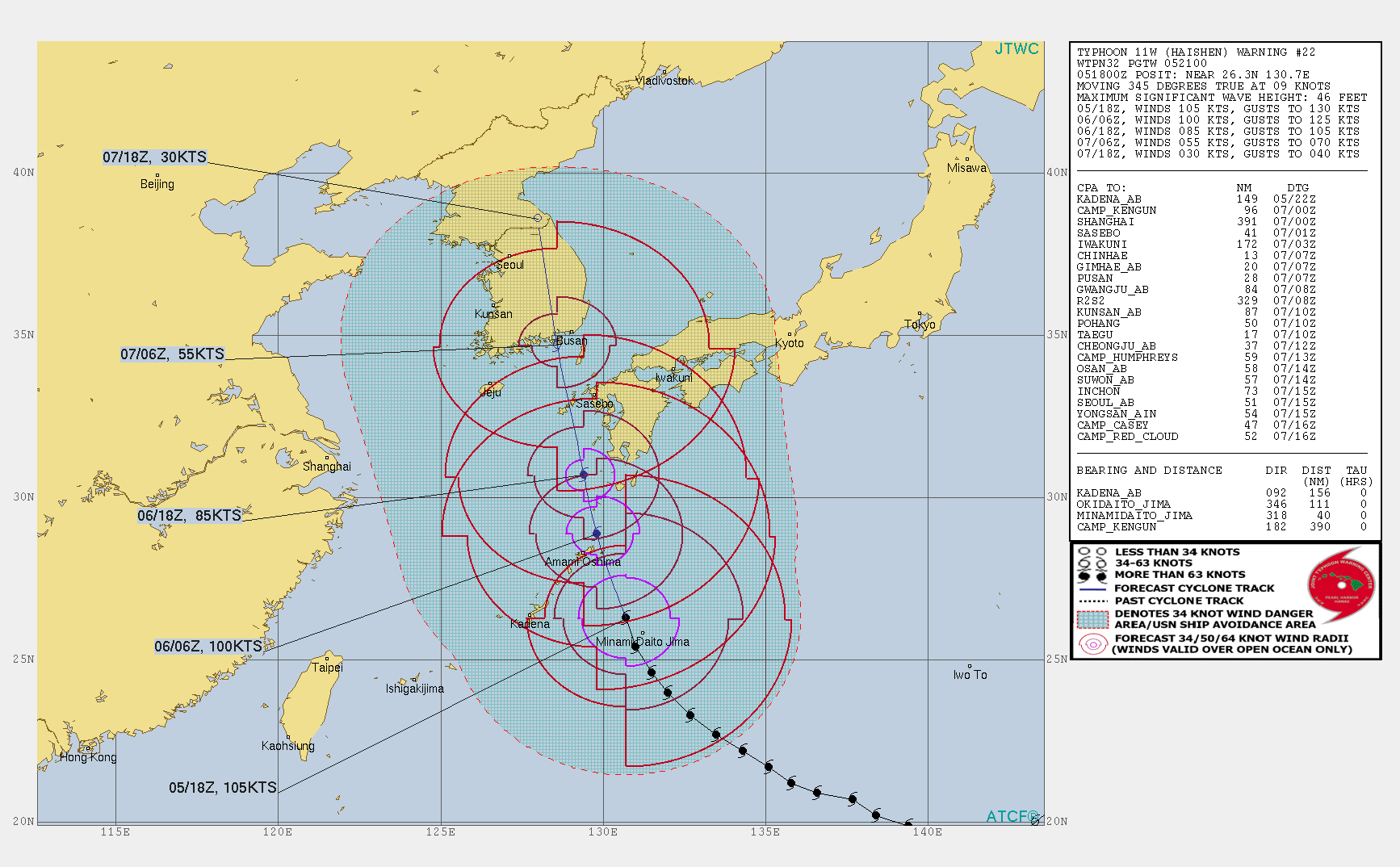 本日(7日)午前10時、韓国気象庁が「本日午前9時ウルサン(蔚山)海岸に上陸した」と発表したこと。