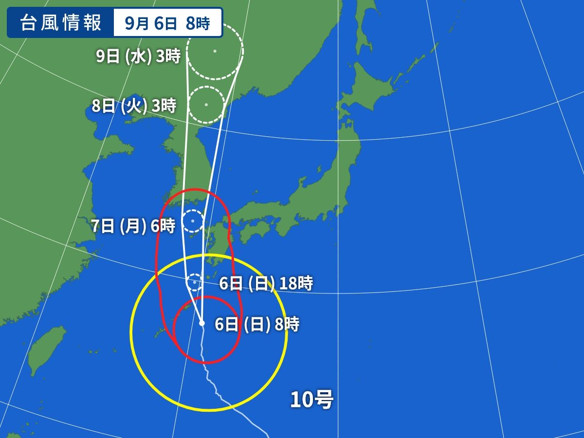 台風10号の進路 九州の西の海上を抜け朝鮮半島へ(2020年9月7日)