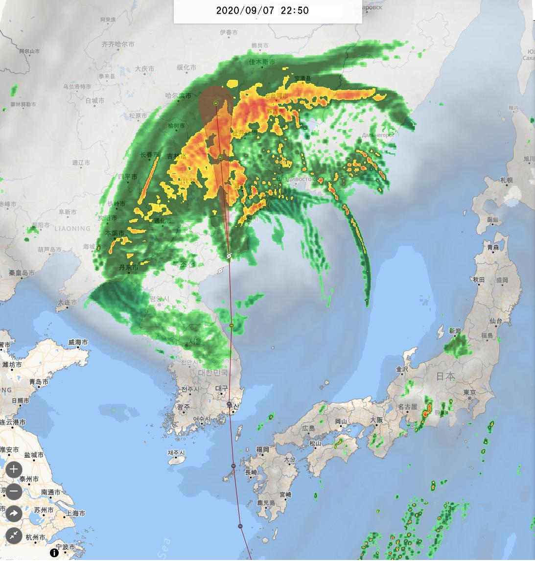 7日午前9時ごろ、南東部の釜山に接近してから東海岸と鬱陵島の間を通過し、同午後9時ごろ、北朝鮮北東部の咸鏡北道・清津に接近する見通し。
