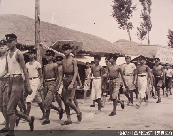 > 写真の中には当時の日本人警察、タラワ島に連れて行かれる韓国人労働者の姿、学徒補給隊動員の姿などが見られる