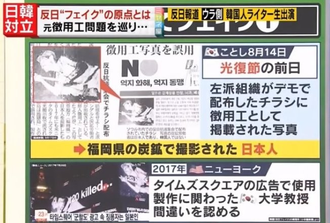 ・韓国では日本人炭鉱夫の写真が徴用工として流布されるなど歴史歪曲が行われている