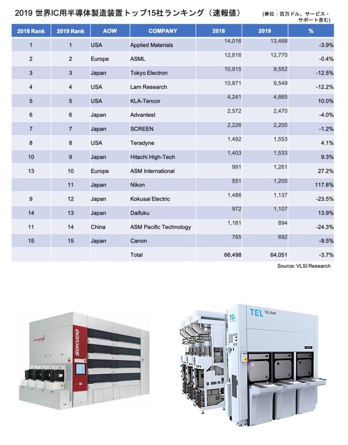 には道のりが遠いという。■2019年世界の半導体装置メーカー 売上トップ15社 (半導体装置の売上高)