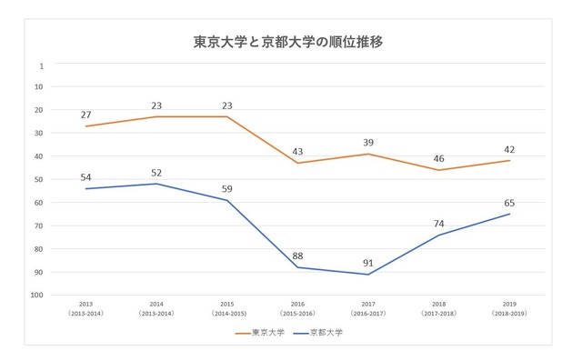 東京大学(36位)、京都大学(54位)