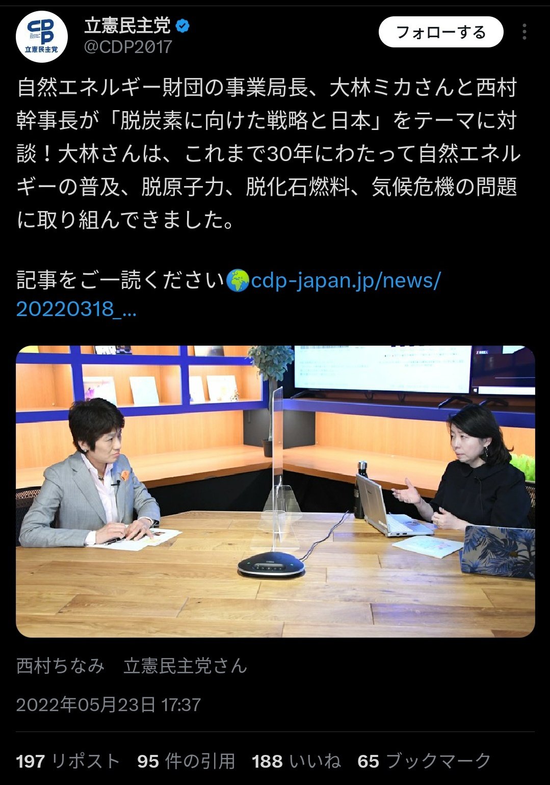 推進室はXで「自然エネルギー財団と中国政府・企業とは人的・資本的な関係はないとのこと。内閣府でも確認を行う」と説明した。