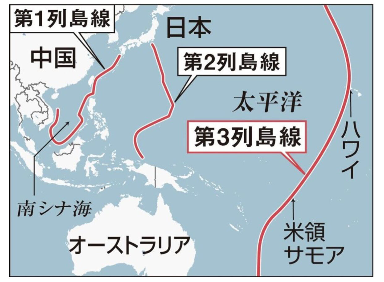 海軍の戦略的基礎を築いたのは●(=登におおざと)氏の側近、劉華清・元海軍司令官だ。劉氏は80年代、海軍の作戦半径を2000年までに第1列島線(九州-沖縄-台湾-フィリピン)に拡大し、20年までに小笠原諸島やグアムを結ぶ第2列島線を突破、50年には世界的な制海権を掌握する構想を描いた。
