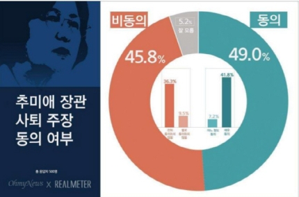 リアルメーターは10日、文在寅(ムン・ジェイン)大統領と、共に民主党の支持率が、軒並み下落したとし、秋美愛(チュ・ミエ)法務部長官の息子特恵論争と分析されると明らかにした。