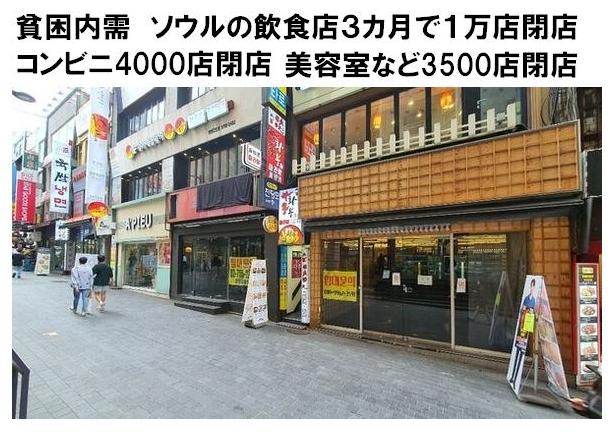 【韓国】 2020年4月~6月の3か月でソウルの飲食店1万店が閉店、コンビニ4000店、美容室など3500店が閉店 2020/09/07