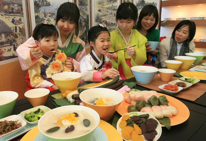 新年のお辞儀が終わったら、供え物をみんなで食べる。これらの食べ物のうち、トッククは最も代表的な旧正月の食べ物だ。白米を練って長くしたカレトックを薄く切って煮たトッククには、無病息災と豊年を祈る意味が込められている。韓国では古くからトッククを一杯食べると、一つ年をとるといわれている。トッククはソルナルを代表する食べ物だが、マンドゥククをトッククの代わりに食べる地域・地方もある。旧正月は韓国の主要な名節だけに、この日の食卓は多様な韓国料理が並ぶ。トッククのほかにも、様々な材料で作ったジョンやトック(餅)、プルコギ、カルビ、伝統的なデザートであるスジョンやシッケなども欠かすことはできない。韓国人は、バラエティに富んだ旧正月の料理の誘惑に負けてついつい食べ過ぎてしまい、連休が終わってからダイエットを始める。