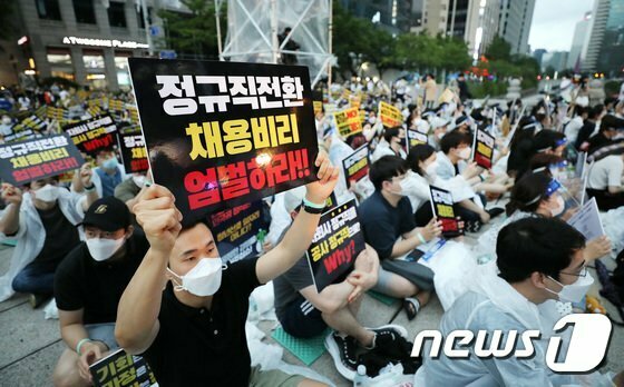 また今回の発表は特に20代、30代の若者たちから強烈な反感を浴びました。 23日に大統領府のホームページ国民請願にアップされた「公企業の非正規雇用の正規化を止めてください」と題する請願文には、24日午後8時現在で20万人以上が同意しています。請願人は「これは平等ではなく逆差別であり、若者たちにとっては、より大きな不幸だ」と主張しています。