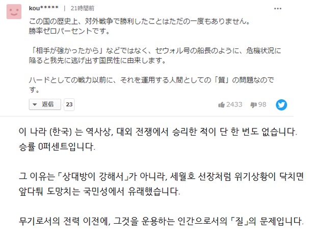 韓国人は兵役があるのに、指揮と統制の概念を理解していないこと実例が多いですね。>>31