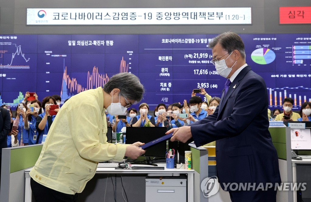 嘘の感染症と言う言葉を聴いた時・・・・・・飲んでいたものを吹いた・・・・。笑ってはいけないが・・・・・・・・笑いを堪え切れなかった。申し訳ない。新設の疾病管理庁トップは「K防疫の英雄」 文大統領が任命状授与