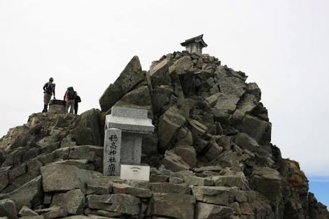 山岳信仰の山には鳥居、祠などがある。