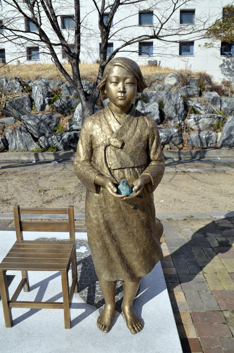 在韓米軍前に設置されたこの像は、アメリカの抗議により撤去され、倉庫に眠っていましたが、慰安婦を象徴する像として転用され、今に至ります。