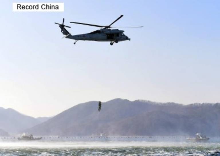 16日、韓国・朝鮮日報は、日本、米国、豪州、韓国による合同演習で、韓国海軍のヘリが初めて日本の海上自衛隊のヘリ空母に着艦する訓練を行ったと伝えた。資料写真(韓国国防部Facebookアカウントより)。(Record China)