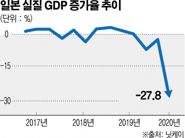 일본 2분기 실질 GDP -27.8%...전후 최악 성장률 기록
