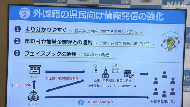 群馬県は、県内に住むブラジル人などに新型コロナウイルスの感染者が増えているとして外国語での感染防止対策の呼びかけを強化することになりました。日系人が多く住む大泉町は、独自の緊急事態宣言を出して不要不急の外出の自粛などを呼びかけることにしています。