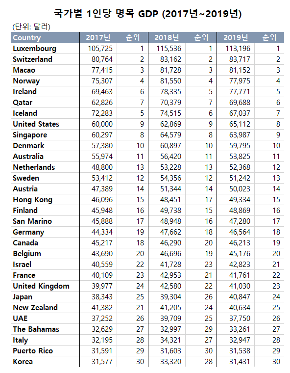 22位.日本(40,846$) > 27位.韓国(31,430$)