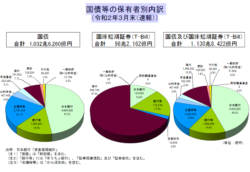 日本政府が発行した国債のうち92.3%は、日銀、民間銀行・国内主要生命保険会社などの資産である。