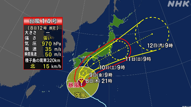 12号台風の日本列島に接近... 東京など首都圏影響を受けるように