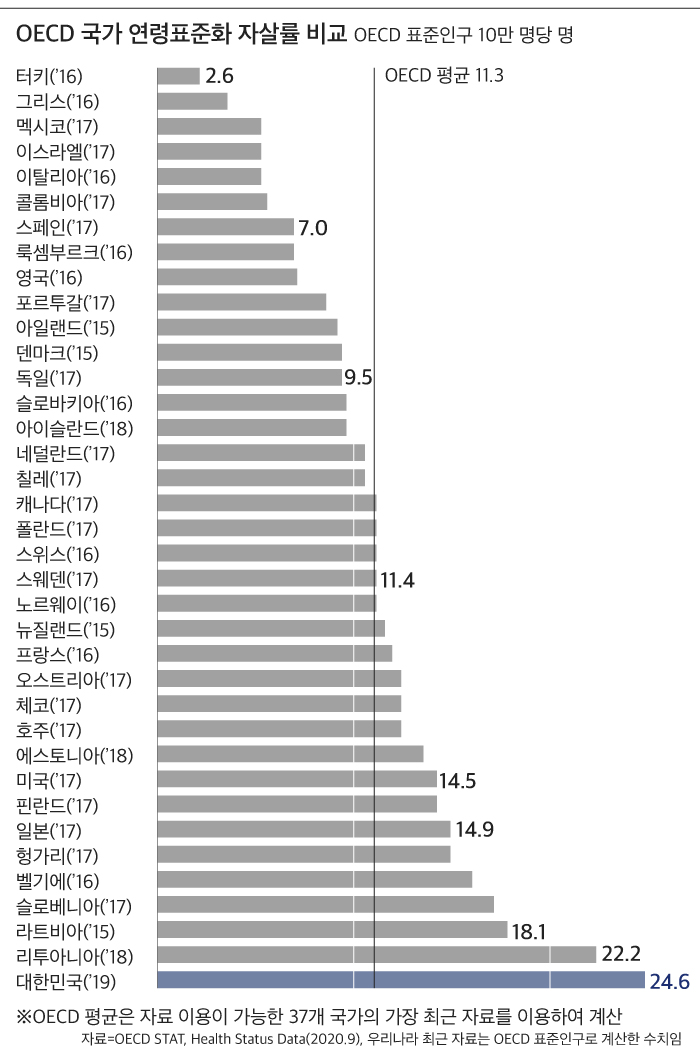 韓国の自殺率...OECD加盟国1位 (入力2020.09.22) ←最新