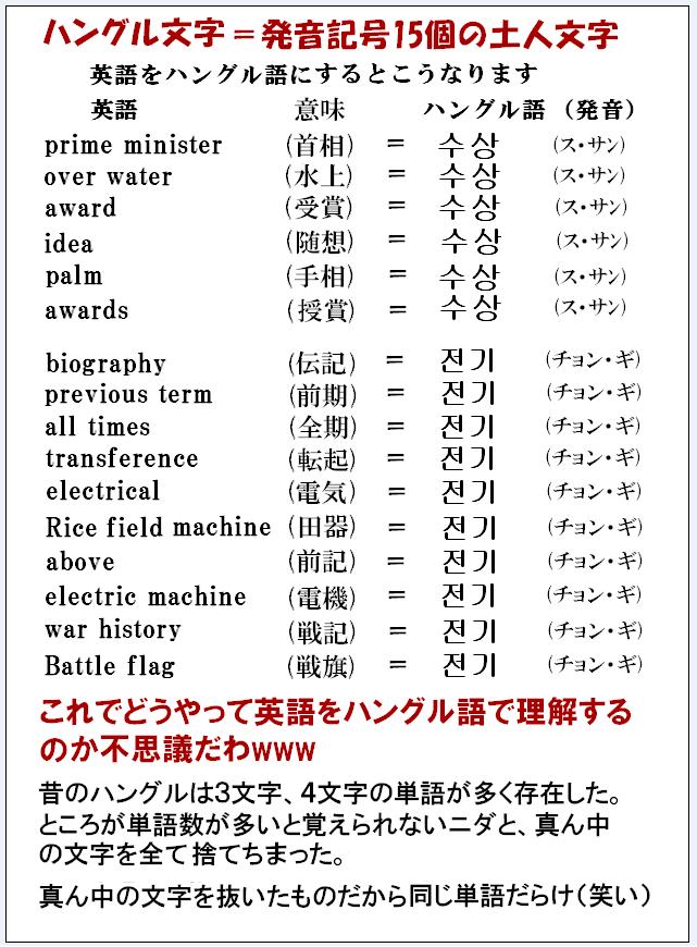 本当に韓国人は、漢字を捨てたことにより、意味を理解できず、機能的文盲に陥ってると思うわ欠陥ハングルの同音異義語