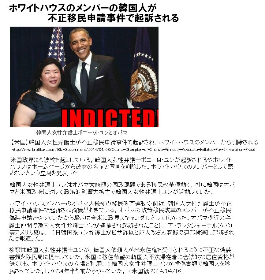 が韓国人だったから、違法でもホワイトハウスの命令で幾らでも移民し